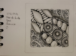 Here is my tile from this morning. I started with string 136. Then the patterns: Echoism, Nipa, Tipple, LO´s (my tangleation of Eke) and Ipso (Jennifer Hohensteiner). Note that I had not opened my mail-box when I did this!I love when moments like this appears. It is a reminder to me that there is so much more than I can see at the first sight, and there is knowledge beyond what I know of! More to find out....